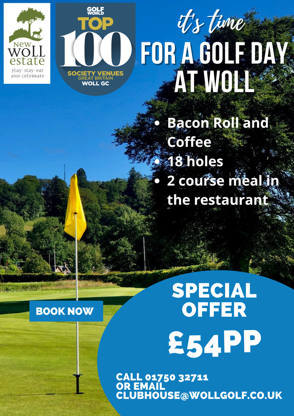 New Woll Estate and The Woll Golf Course boasts a beautiful 18-hole course in its own secluded valley in the Scottish Borders. The par 70 parkland course is open to everyone, 7 days a week.